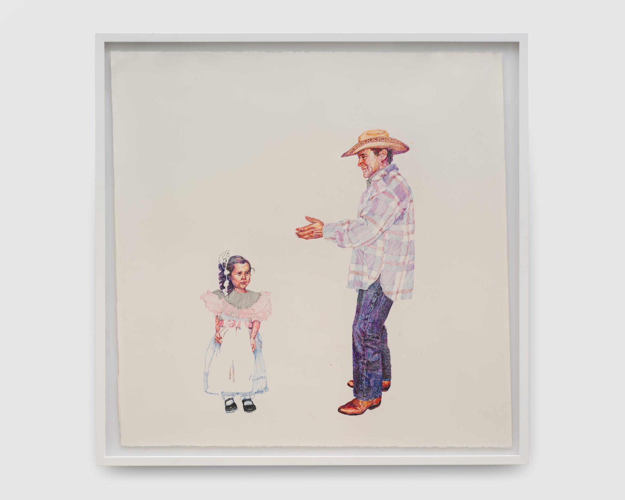 Charlie James Gallery is pleased to present Daniela García Hamilton: Amanecer / Atardecer (Sunrise / Sunset), the artist’s first exhibition with the gallery. García Hamilton creates hybrid canvases that combine embroidery and oil painting, capturing an intergenerational family story drawn from an archive of family photos and stories. As a first-generation American from a Mexican family, García Hamilton investigates legacies of tradition, the inevitability of assimilation, and the ways in which family histories replay themselves over time. The works thread family members together across generations and borders, reinforcing the ties that transcend time and geography.